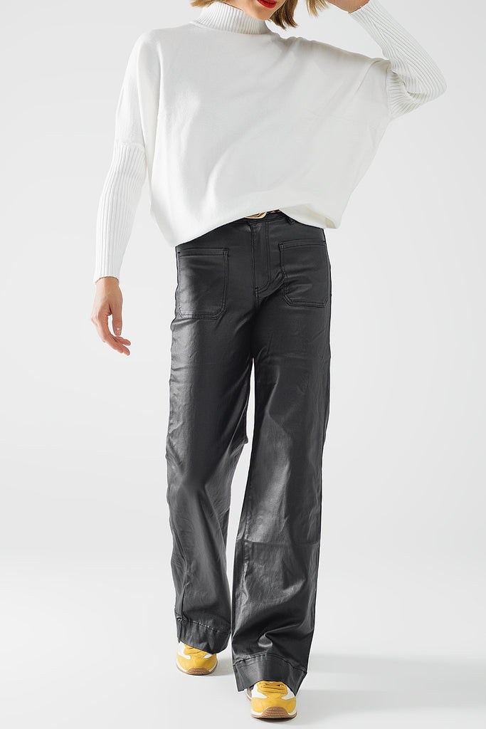 Q2 Faux Leather Wide Leg Pants - Black
