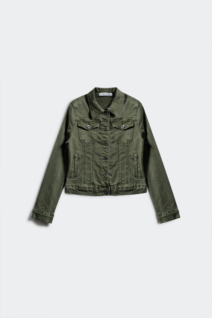 The Q2 Basic Denim Trucker Jacket - Khaki Green