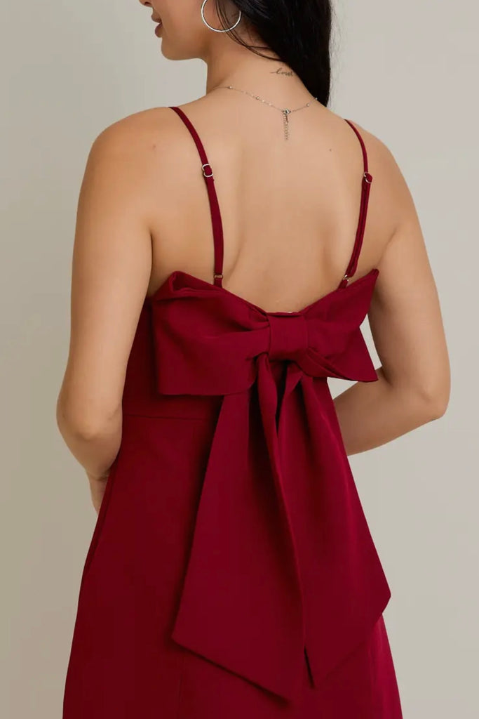 This dress is perfect for date night or even homecoming. Its chic simple design features a charming bow accent on the back.