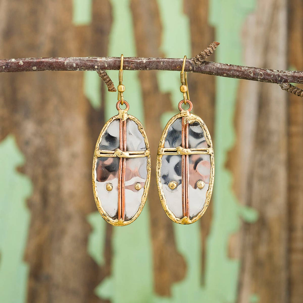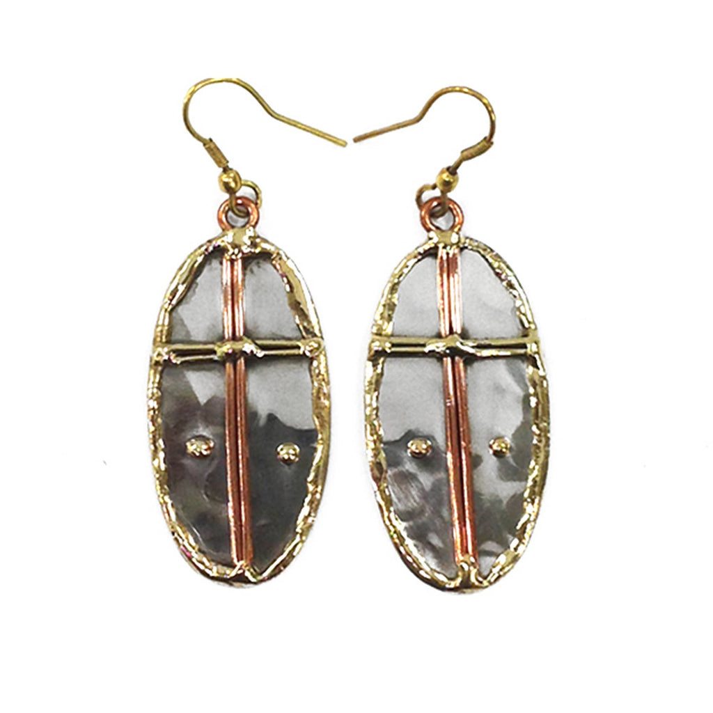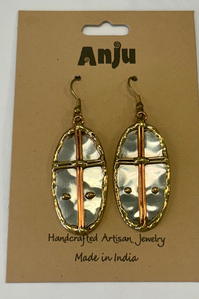 Handcrafted by artisans, made of stainless steel with brass and copper. Ear wires are lead and cadmium free.