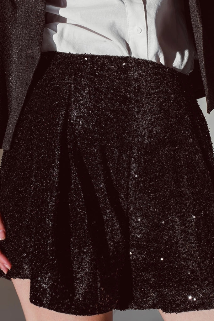 Black sequined shorts. Perfect for parties and other occasions. Perfect for all bodytypes.