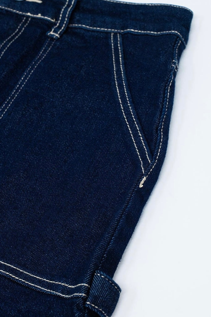 Dark wash denim miniskirt, the fabric is elastic with front pockets and back pockets