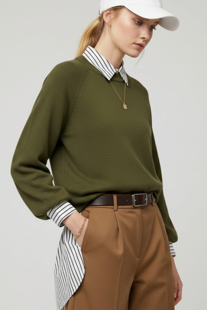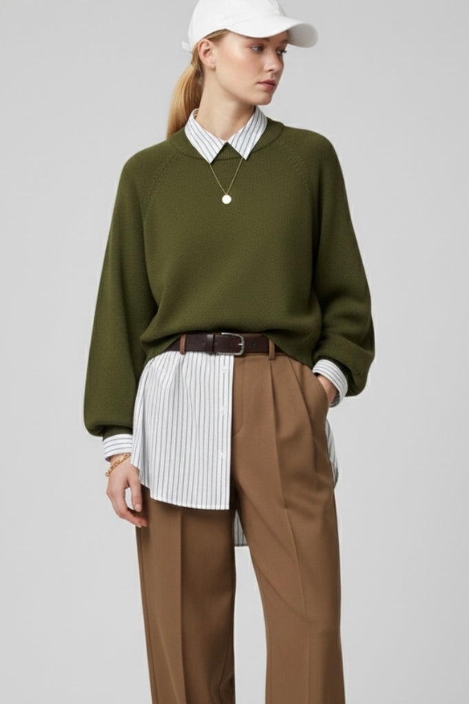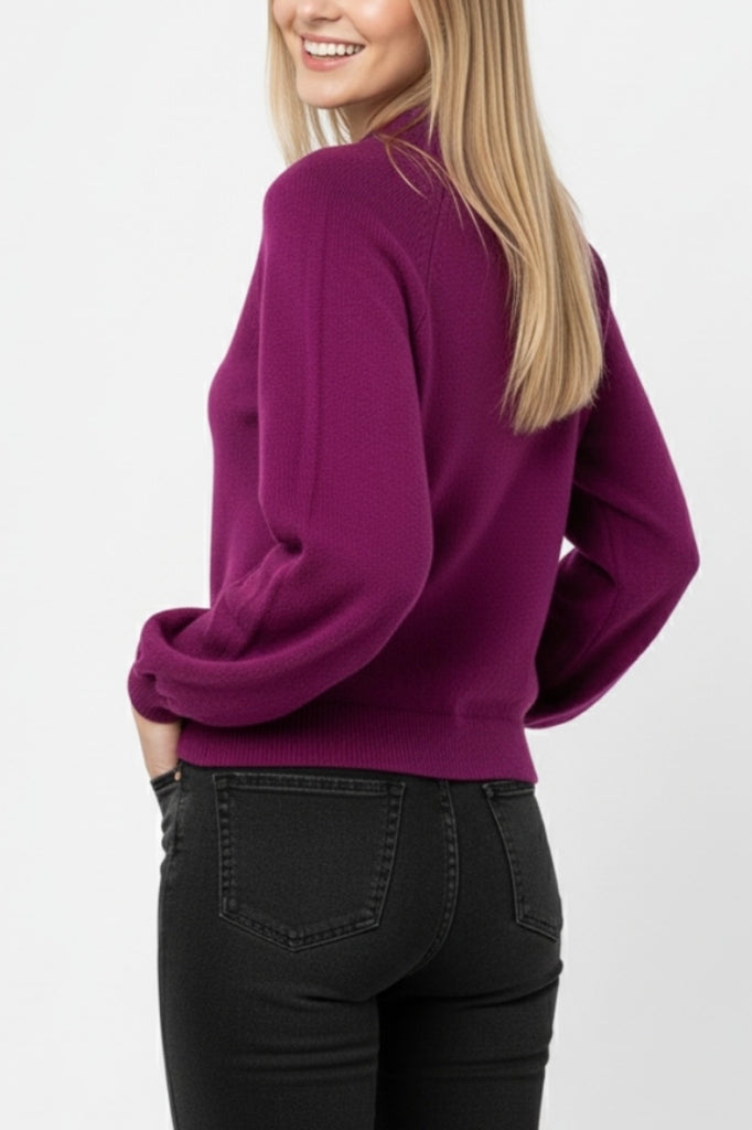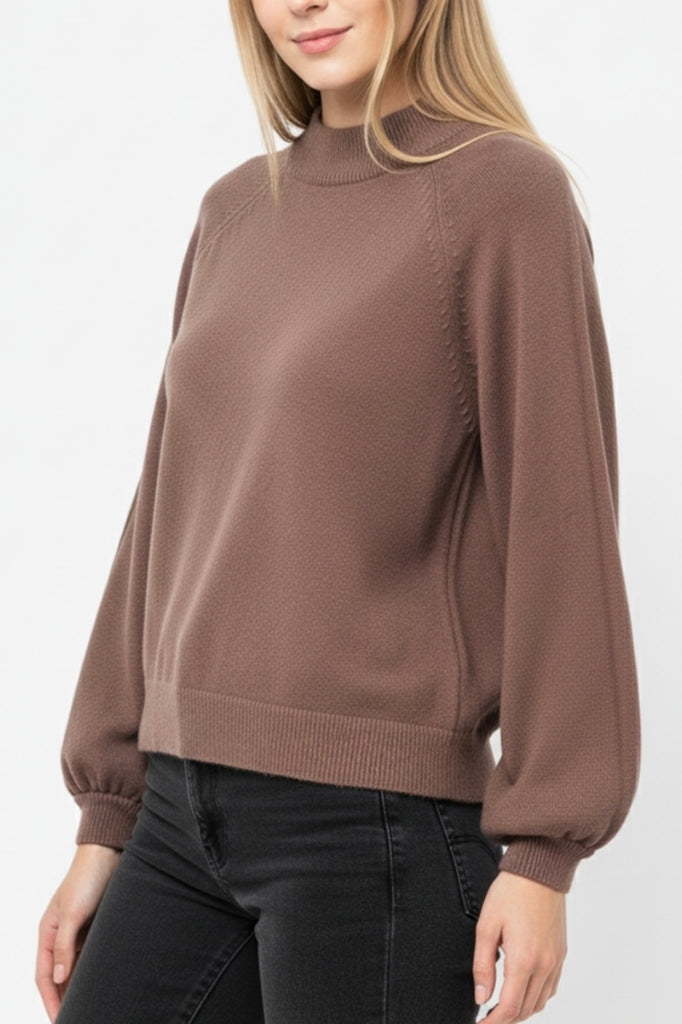 Introducing a beautifully designed relaxed sweater that combines comfort and style. This piece features charming balloon sleeves that add a touch of flair while the wide ribbing at the crew neck offers a snug yet comfortable fit. The raglan style sleeves provide ease of movement making it perfect for casual wear or lounging at home. Crafted from a soft knit fabric this jumper is not only pleasant against the skin but also versatile enough to pair with various outfits. Elevate your wardrobe with this cozy essential that you'll reach for again and again.