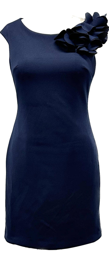 Donna Ricco Boat Neck Sheath Dress with Shoulder Detail