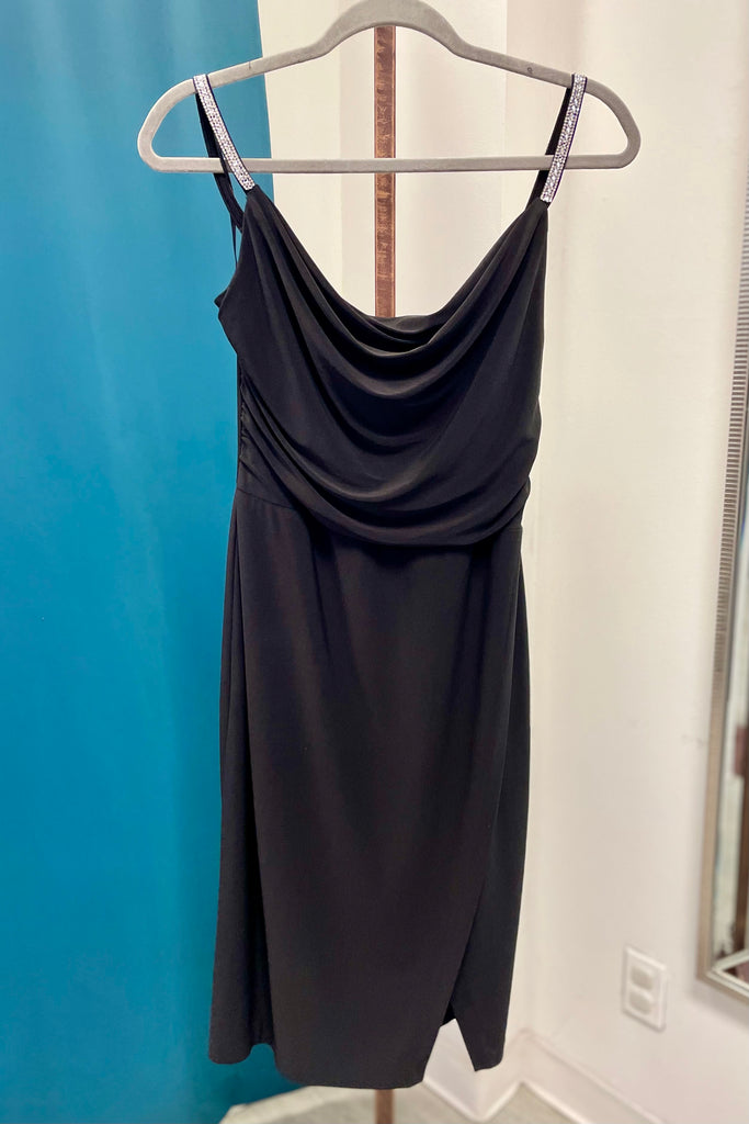 NW Nightway Jeweled Spaghetti Strap Jersey Mini Cocktail Dress - Black