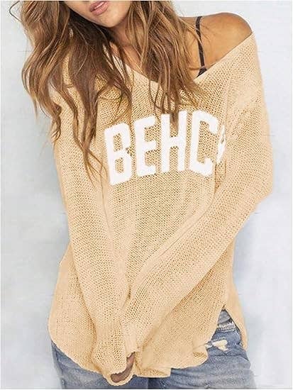 Take me to the Beach Please!"Beach" V-Neck Hollow Knit Sweater