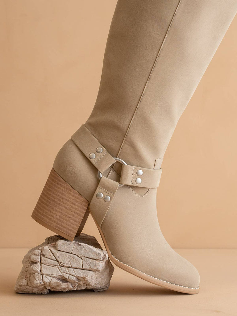 NEW: Fall/Winter 2025 style Introducing The HOLLIE: A standout knee-high bucket boot that blends classic style with modern flair. Crafted with atelier-picked materials, The Hollie features a sleek silhouette and timeless design, perfect for elevating your look in any season. Materials: * Upper Material: Black: Vegan Leather Upper * Beige: Vegan Leather Upper * Taupe: Suede Upper * Insole Material: DreamCloud Cushion * Sole or Heel Material: Printed Heel Details: * Brand: Oasis Society * Shaft Height: 14.25" * Heel Height: 2.75" * Types of Closures: Zipper * Circumference of Shoe Opening: 15.5" * Shaft Circumference: 15" * Size Run: S