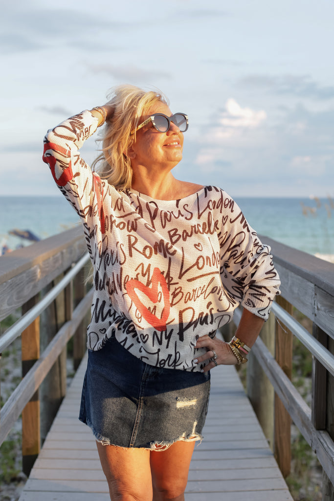 Denim mini skirt with medium washed ripped high waisted. Side pockets. Belt loops. Frayed hem.