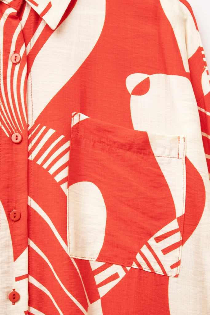 The Red Polo Shirt is a playful piece with an artistic red and white pattern. The polo collar with buttons and chest pocket give it a modern casual look. Perfect for a summer day a creative mood or whenever you're in the mood for something different. Fresh stylish and with a twist.