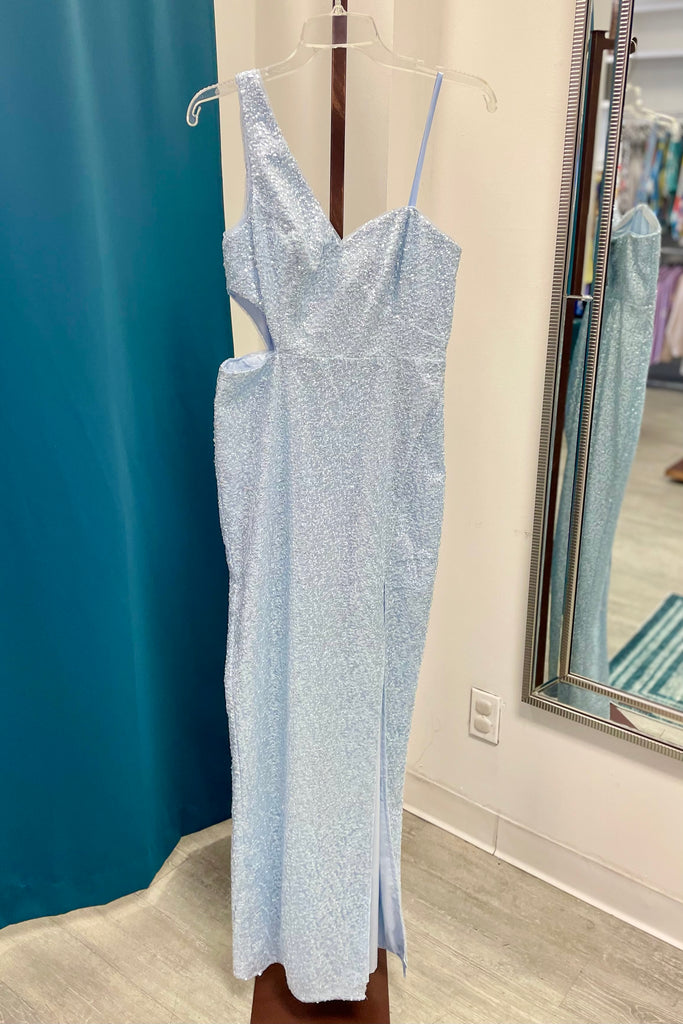 Aidan Mattox Sequined One Shoulder Cutout Gown - Mist