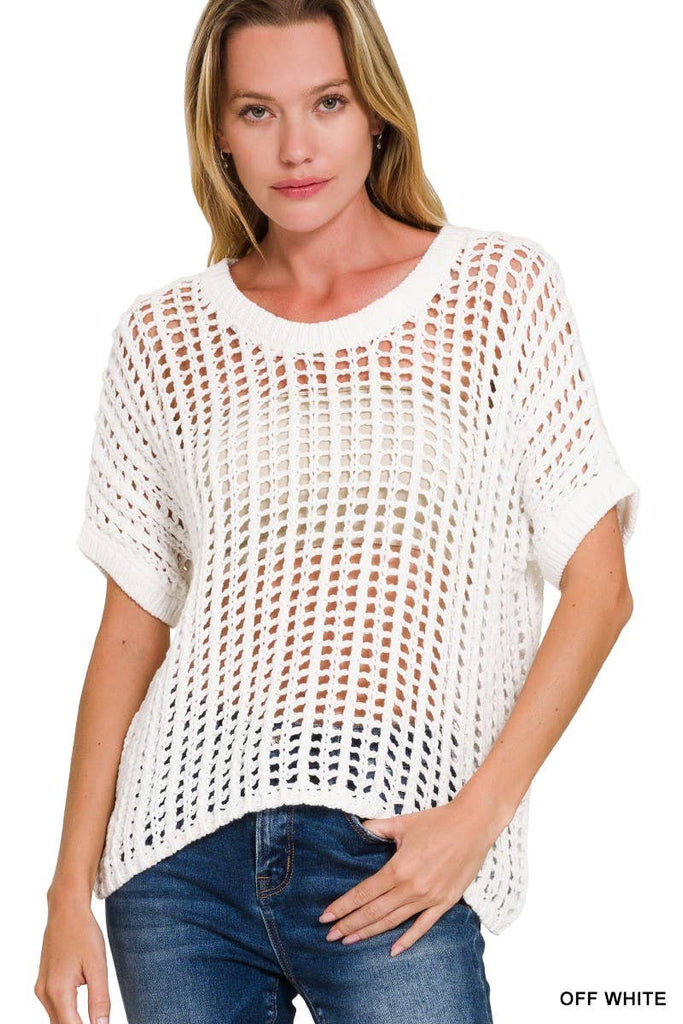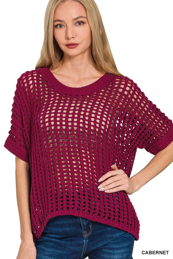 Fish Net Short Sleeve Crochet Sweater Total Body Length: 20.5", Chest: 47" Approx. - Measured From S/m ** Color May Vary Slightly Due To Monitor Resolution Fabric 100%cotton Womens Clothing, Apparel, Western Apparel, Western Wear Made In China