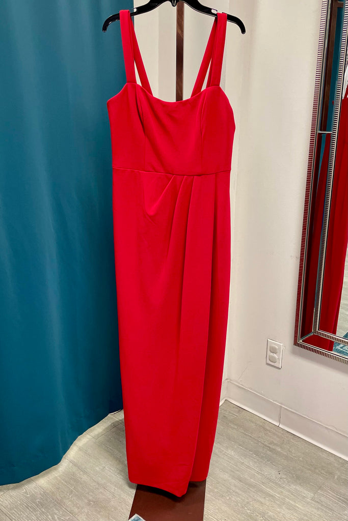 Xscape Pleated Square Neck Gown - Red